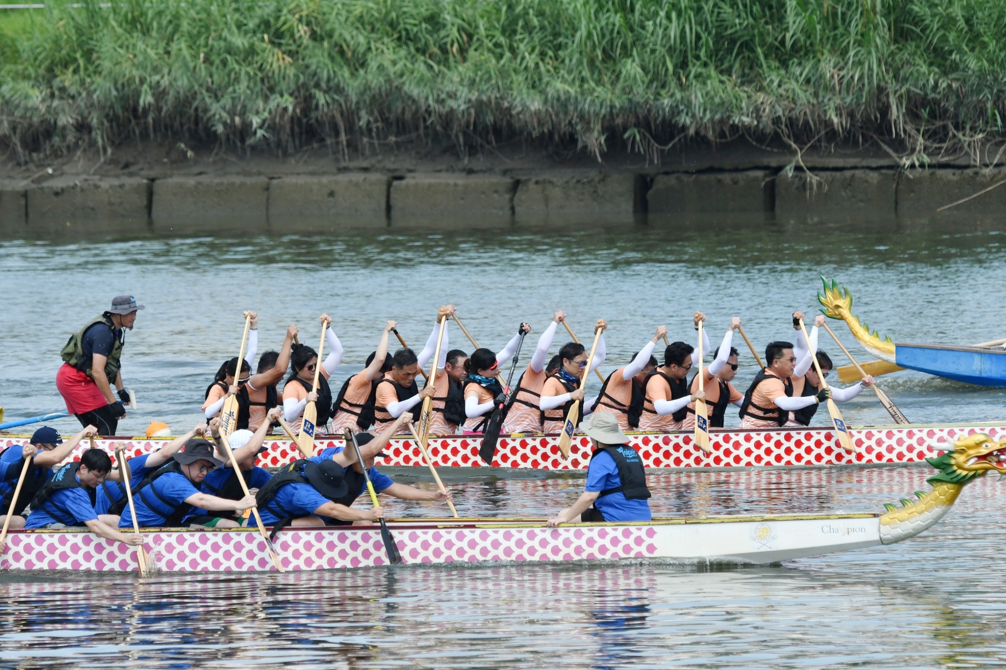 圖二:第四屆政大EMBA校友會理事長盃龍舟賽熱情登場,參賽人數創下新高,共來自政大EMBA、政大國際金融學院、台大EMBA、台師大EMBA、台科大EMBA與長庚EMBA共17支參賽隊伍。